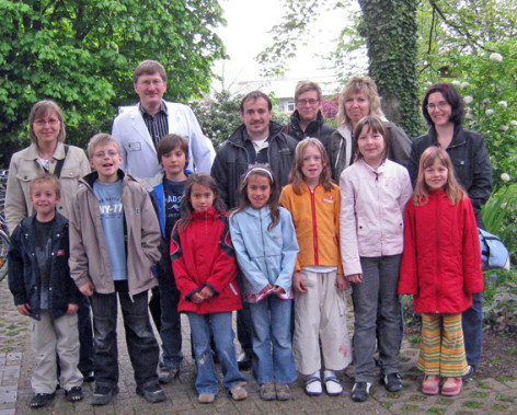Beatrix Kuri, die die Aktion koordiniert hatte, besuchte mit weiteren Eltern und den Kindern den SPATZ und überreichten ihre Spende an SPATZ-Gründer Prof. Schwab. Dieser bedankte sich herzlich und berichtete ein wenig über die Notwendigkeit, durch den SPATZ die Betreuung der jungen Patienten sicherzustellen.