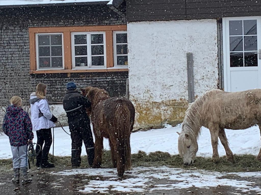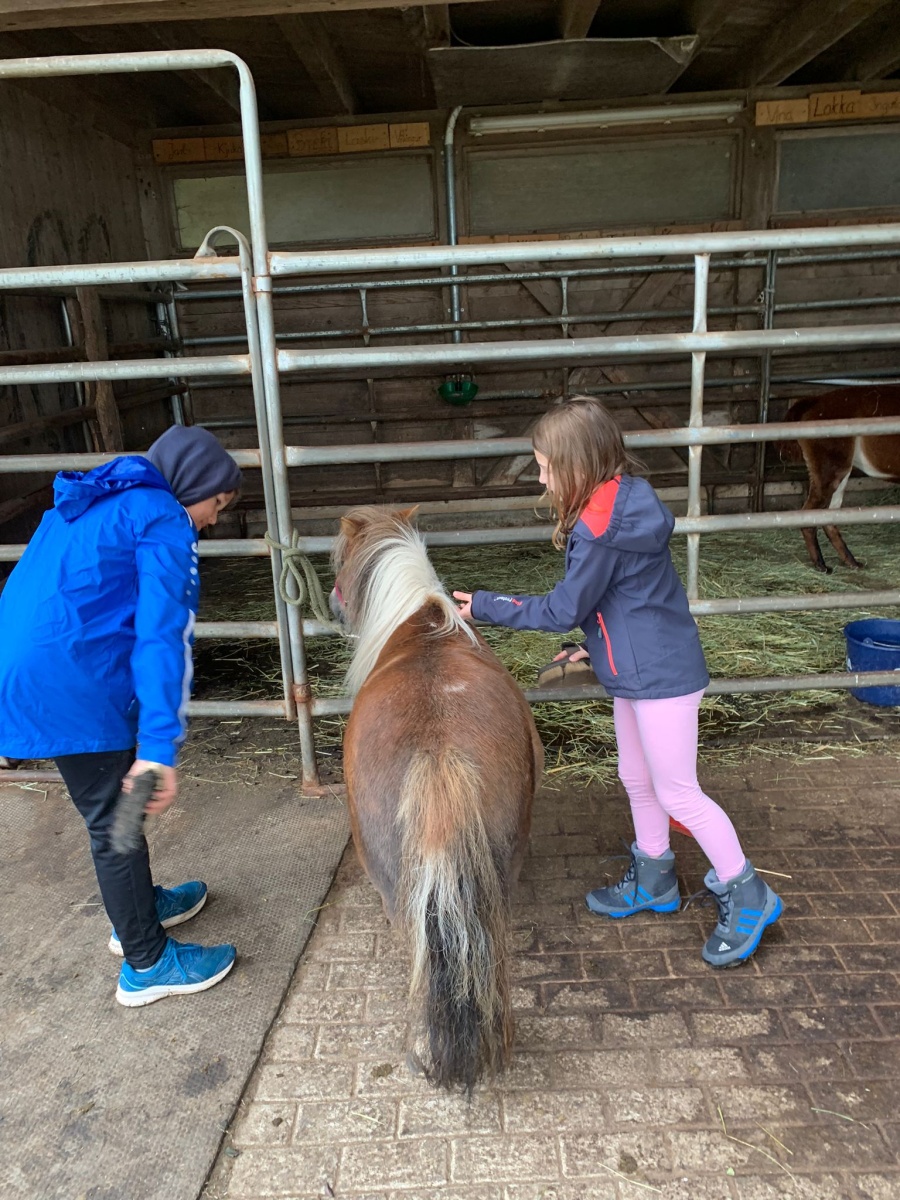 Auch das Schmuddelwetter, was den Frühling der letzten Tage ablöste, machte den Kindern nichts aus, denn der Reiterhof hatte ein tolles Programm für die Kinder zusammengestellt. Und dazwischen blieb auch noch Zeit für eine Schneeballschlacht zwischen Kindern und Betreuern und Zeit zum gemeinsamen Austauschen und Spielen.