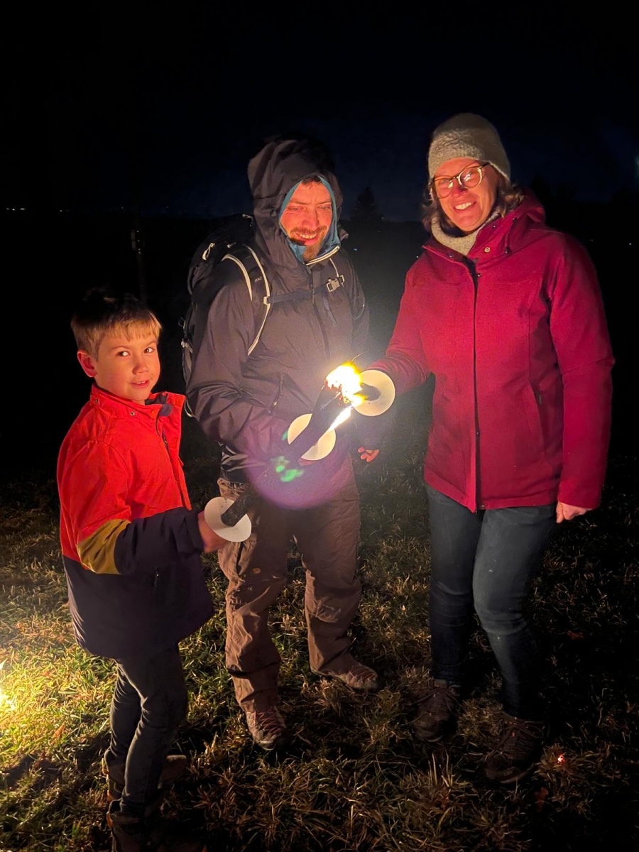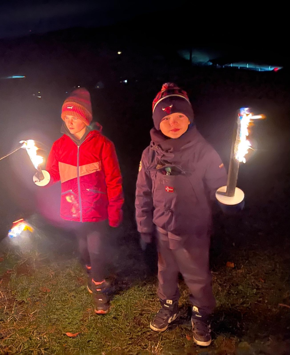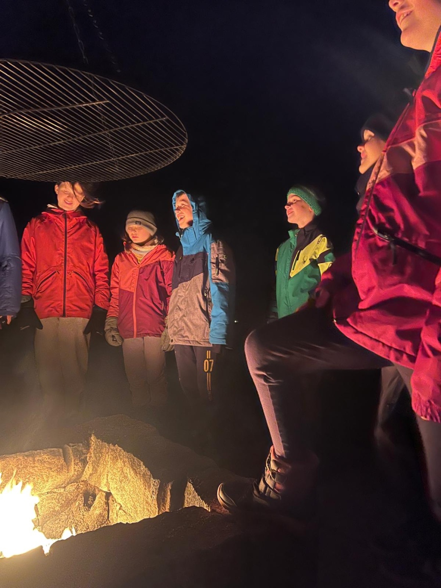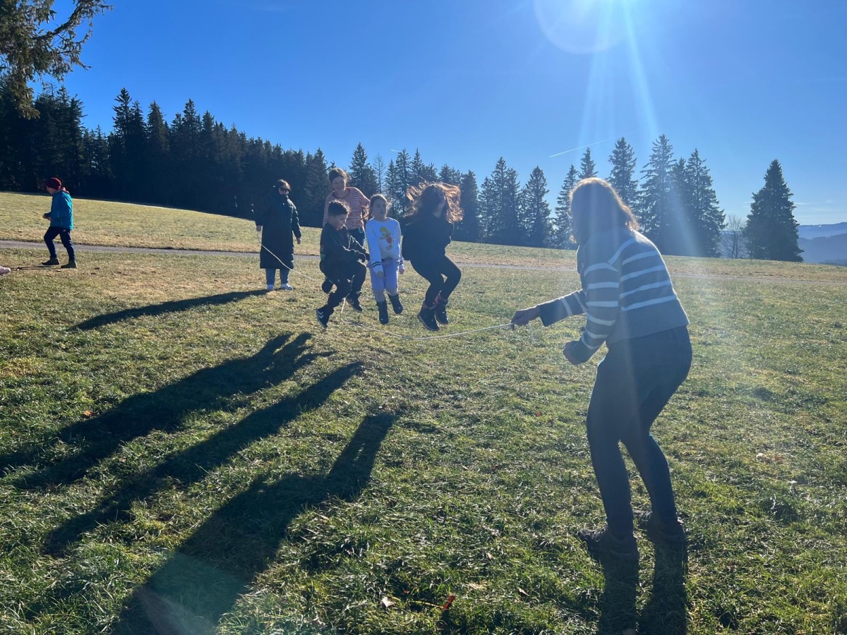 Fussball, Seilspringen, Tannenzapfenweitwurf, Klettern, jeder fand eine Beschäftigung und hatte Spass, dennoch waren alle froh, als es zu Kuchen und Muffins in die Hütte zurückging. Keiner von den Kids wollte an diesem Wochenende noch einen Fuss vor die Hütte setzen, aber nach dem Abendessen, waren alle begeistert, als es zur Fackelwanderung noch einmal rausging. Der Wind machte es etwas ungemütlich und gefährlich, so landeten die Fackeln in der Grillstelle und wir lauschten bei einer wohligen Wärme den Witzen der Kinder.